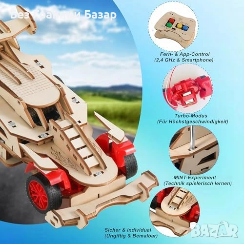 Нов Дървен STEM комплект F1 дистанционно управляема кола за деца играчка