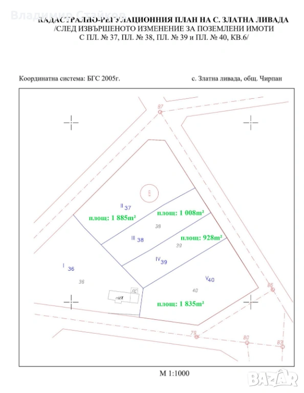Имотът е образуван от няколко парцела с общи граници, което позволява правилна форма и функционално разпределение на бъдещите сгради.