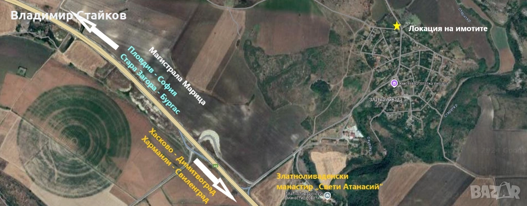 Продава се изключителен инвестиционен имот в с. Златна ливада (общ. Чирпан) с директен достъп от Автомагистрала Марица (от двете посоки на движение), само на: