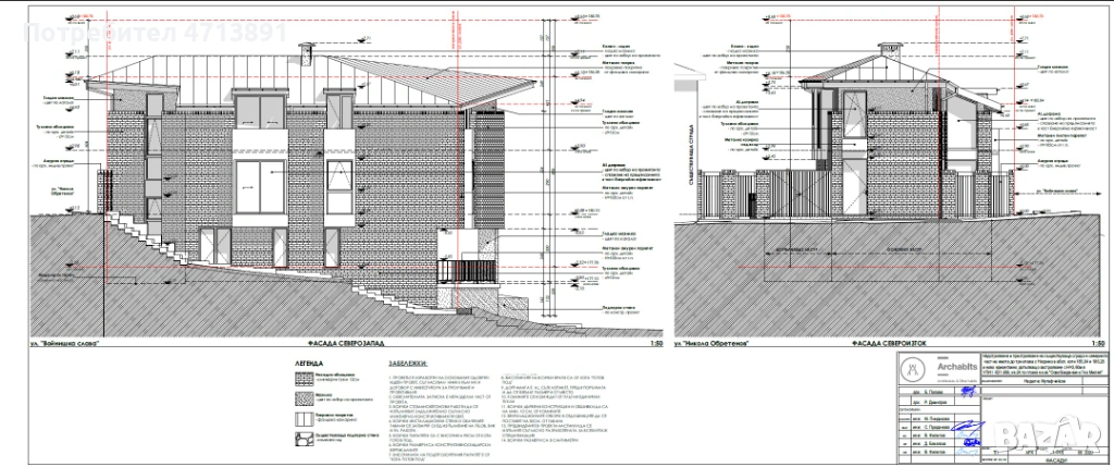 * Плановете са проектирани по такъв начин, че партерният и първият етаж имат отделни електромери и могат да бъдат разделени на 4 апартамента по 50,5 м2; има възможност за кандидатстване за мазе