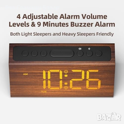 Нов Будилник с две аларми, USB зареждане и регулиране на звук за дом стая