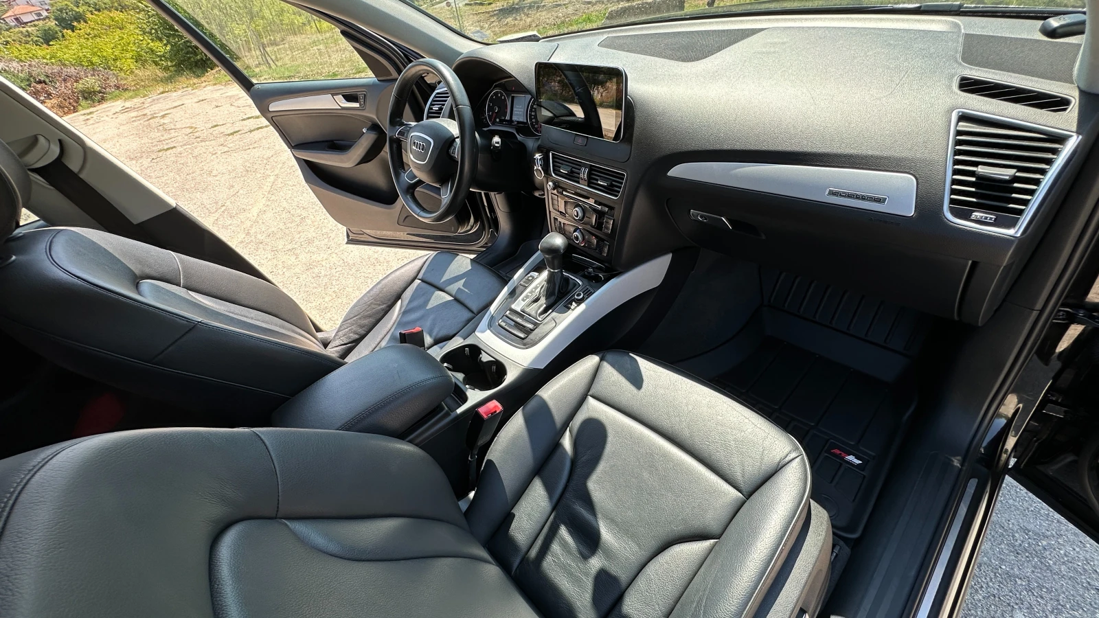 Ауди Q5 PREMIUM 2. 0 TFSI 220 к. с. 8 - степенна ZF автоматична скоростна кутия, 4х4. Лед дневни светлини, би ксенонови фарове, задна камера, автопилот, нова Android медия с 12 инчов екран на стойност 1200лв. Сменени всички консумативи, включително и масло в скоростната кутия (налични фактури) Автомобила е в отлично техническо и визуално състояние. Последно обслужен преди 2000км. Сключено Каско, ГО, винетка, преглед всичко платено. Плюс втори комплект луксозни зимни стелки Proline. WIN-WA1C2AFP8GA109984. Два оригинални ключа. 4 нови гуми Michelin Alpin 7 DOT 1924, сменени 4-те диска и накладки + спирачна течност. Качваш се и караш.