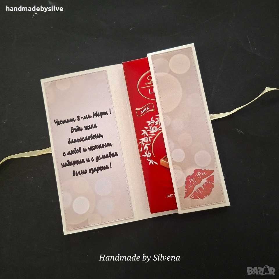 картичка с място за шоколад, снимка 1 - Ръчно изработени сувенири - 53156653 картичка с място за шоколад, снимка 2 - Ръчно изработени сувенири - 53156653 1/2
