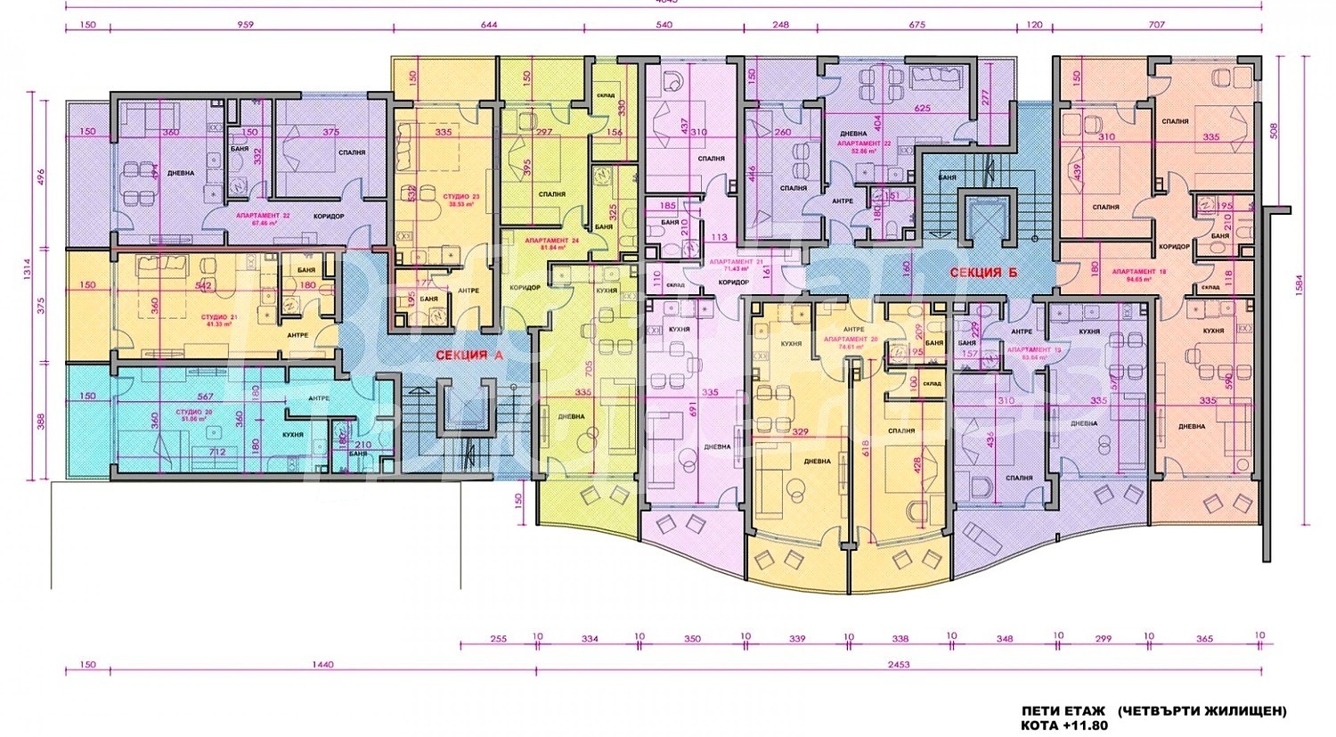 Имотът се характеризира с качествено строителство и висок клас на вложението материали. Апартаменти се издават на тапа: