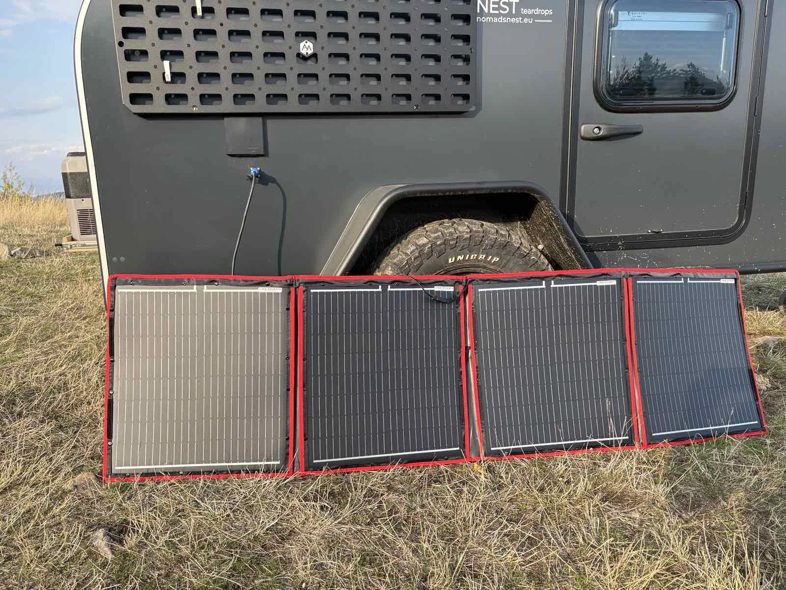 LiFePo4 12V 100Ah батерия DOKKIO сгъваем соларен панел 160W Ел. печка 12V 200W Багажна кутия, 300ltr. Advanced Adventures molle панел за аксесоари Advanced Adventures drop-down масичка Цена на експоната 13200EUR -15%=11200EUR
