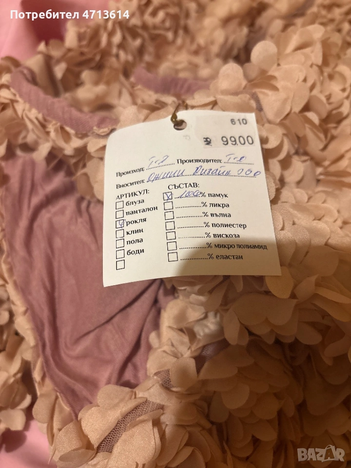 Първата рокля е купувана за 99 лева както се вижда от етикета ,с 3 д ефект