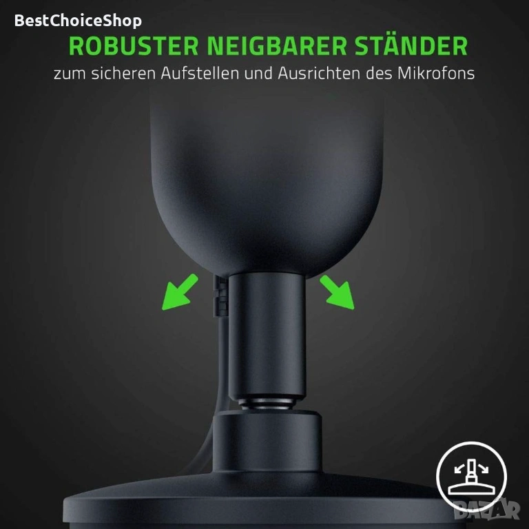 Shockmount: Когато възникнат случайни удари, вграденият амортисьор на Razer Seiren Mini поглъща тези вибрации, за да предпази потока ви или ушите на вашите колеги от смущения в звука.