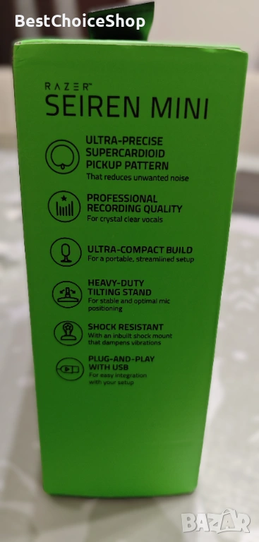 Razer Seiren Mini - ултра компактен кардиоиден микрофон, който пасва идеално за качествен професионален звук с всяка настройка за стрийминг или видео разговори.