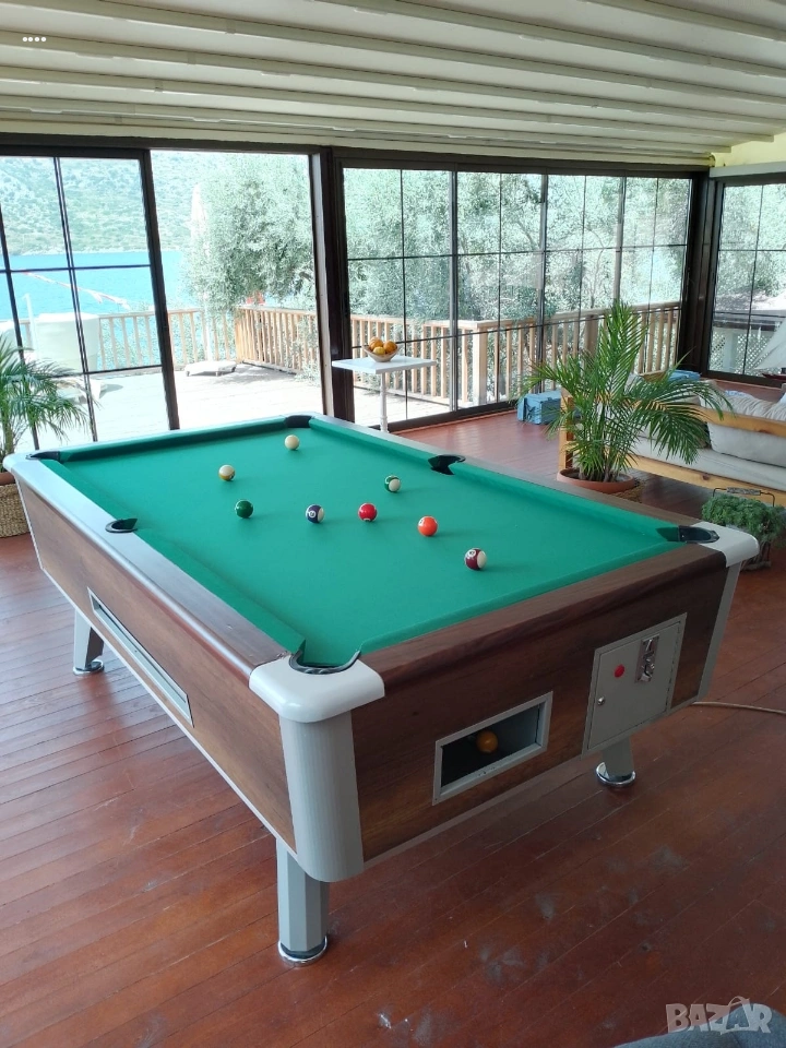 Билярдна маса 7 фута, неразличима от нова, работи с монети и жетони, вече и с евромонети. Към масата получавате: * 4 броя чисто нови щеки * 1 брой държач за щеки * 10 броя креда * 10 броя връхчета * Комплект топчета * ръкавици За повече информация на лично съобщение или на посочения телефон.