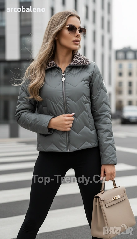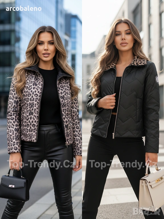Стилно двулицево подплатено яке с функционални джобове. Едната страна е в елегантен едноцветен цвят, а другата е с дързък леопардов мотив за по-смел тоалет. Ръкавът е украсен със стилно лого, което придава на цялото яке луксозен щрих. Идеално за пролет/есен - лесно можете да го съчетаете според настроението или повода си.