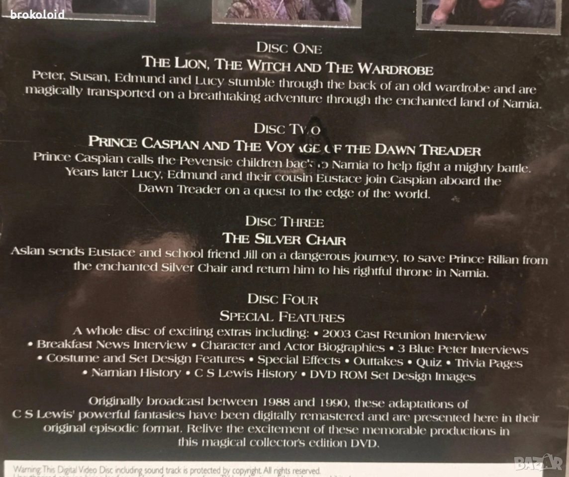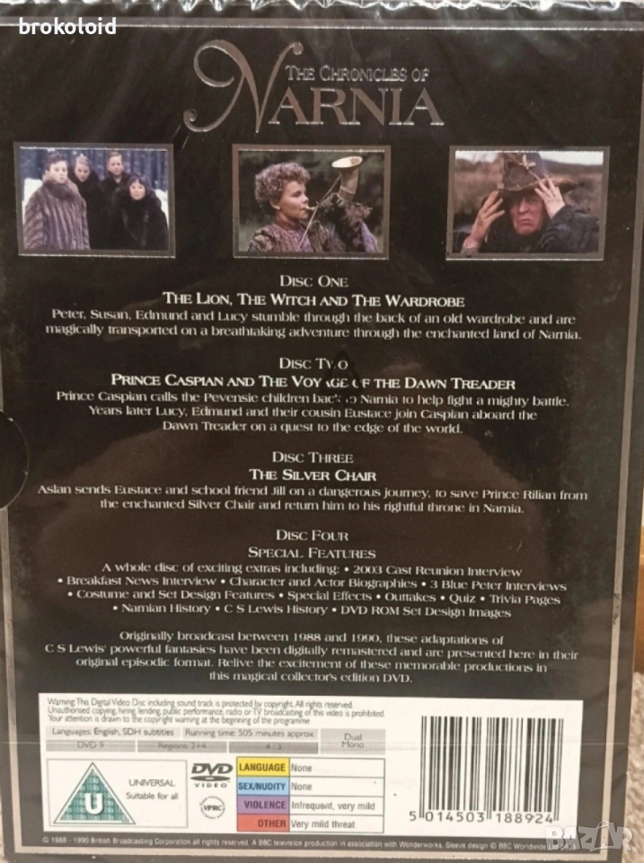 Chronicles of Narnia 1988 - минисериал Хроники Нарния Лъвът Вещицата и Гардеробът DVD, снимка 1 - DVD филми - 53158089 Chronicles of Narnia 1988 - минисериал Хроники Нарния Лъвът Вещицата и Гардеробът DVD, снимка 2 - DVD филми - 53158089 Chronicles of Narnia 1988 - минисериал Хроники Нарния Лъвът Вещицата и Гардеробът DVD, снимка 3 - DVD филми - 53158089 1/3