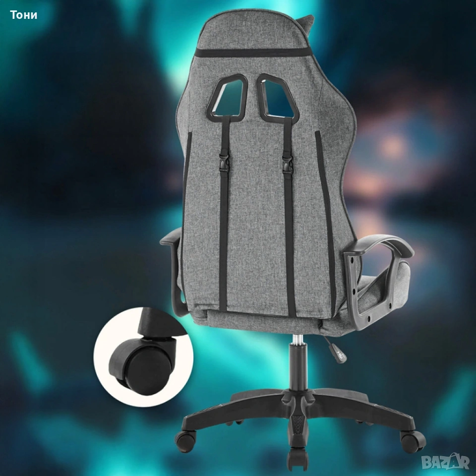 Ергономичен геймърски офис стол с лумбална и шийна опора – комфорт за игра и работа без умора → Обява 53158648