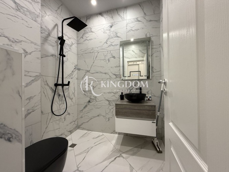 Банята е модерна,като разполагате с черен моноблок, черен смесител, мифка и черна душ система.