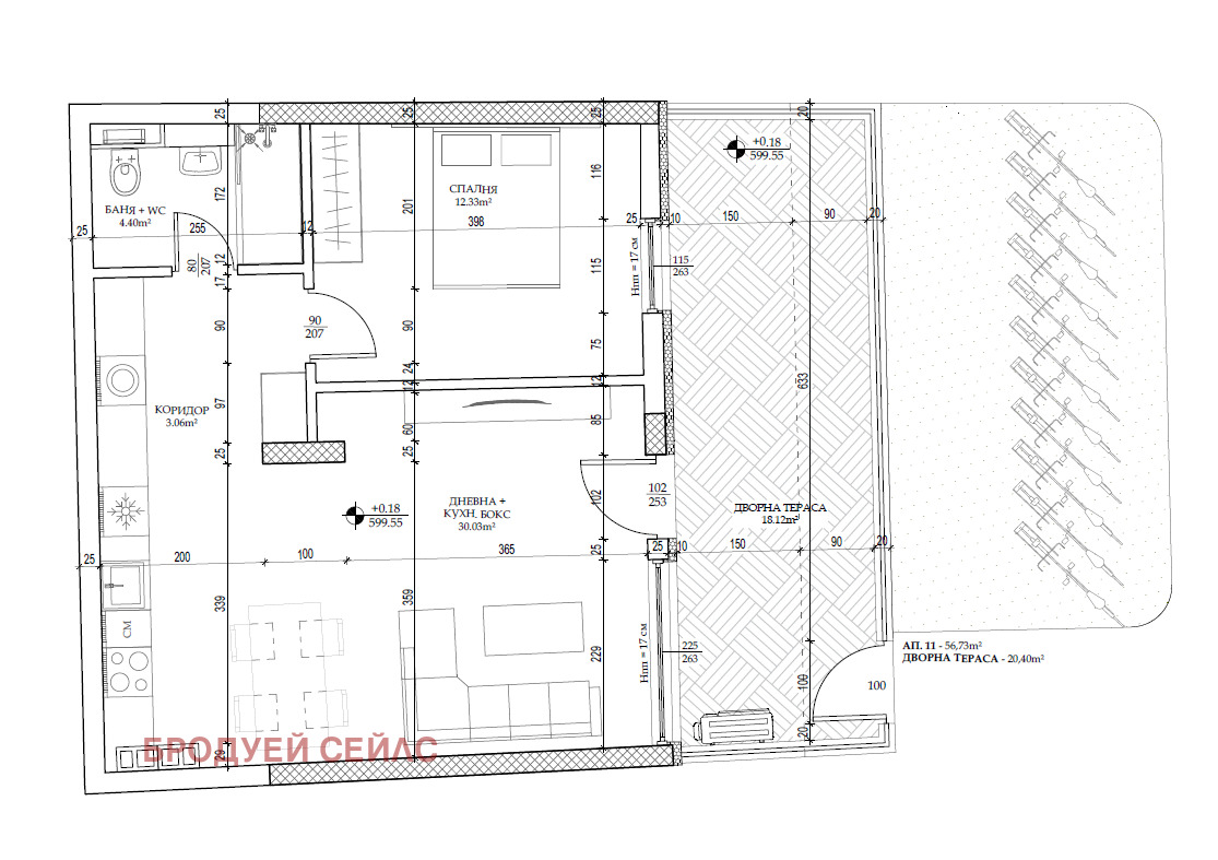 Площ на апартамента: 56,73 кв.м. ЗП / РЗП : 66,49 кв.м.