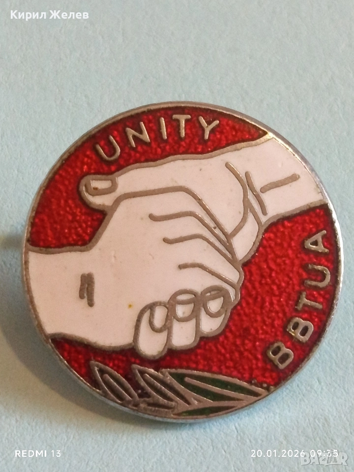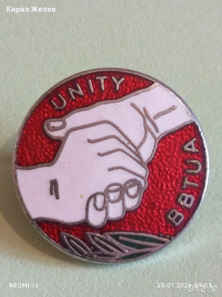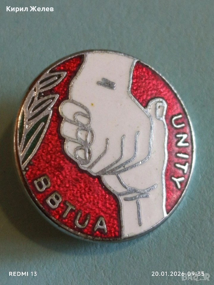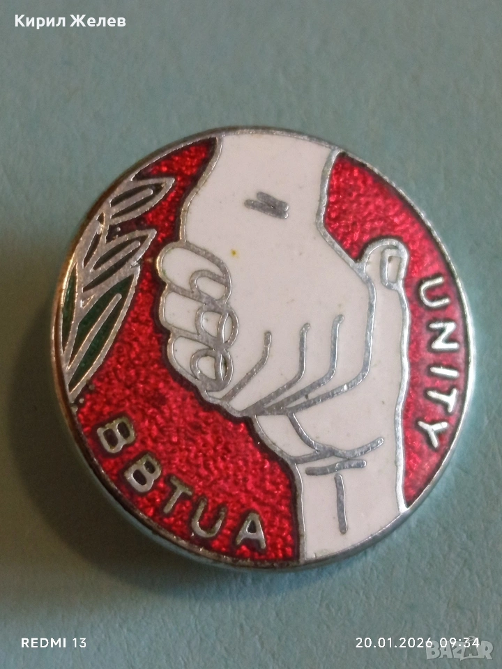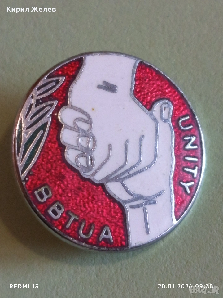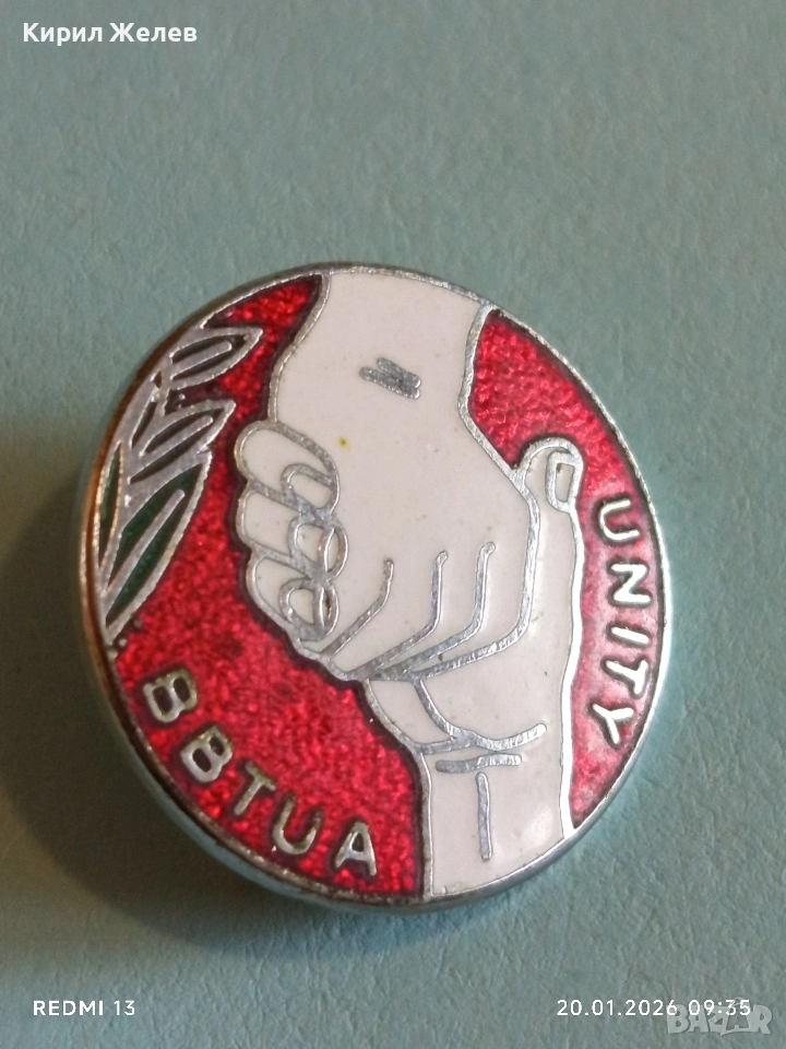 Рядка емайлирана значка Британско-Българската асоциация на профсъюзите BBTUA от соца 52806 → Обява 53159638