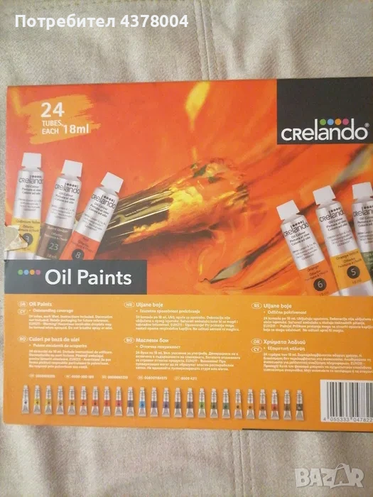 Маслени бои 24x18 ml Crelando+подарък, снимка 1 - Ученически пособия, канцеларски материали - 53159819 Маслени бои 24x18 ml Crelando+подарък, снимка 2 - Ученически пособия, канцеларски материали - 53159819 Маслени бои 24x18 ml Crelando+подарък, снимка 3 - Ученически пособия, канцеларски материали - 53159819 Маслени бои 24x18 ml Crelando+подарък, снимка 4 - Ученически пособия, канцеларски материали - 53159819 Маслени бои 24x18 ml Crelando+подарък, снимка 5 - Ученически пособия, канцеларски материали - 53159819 1/5