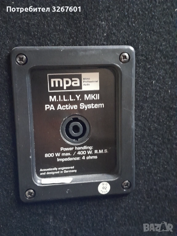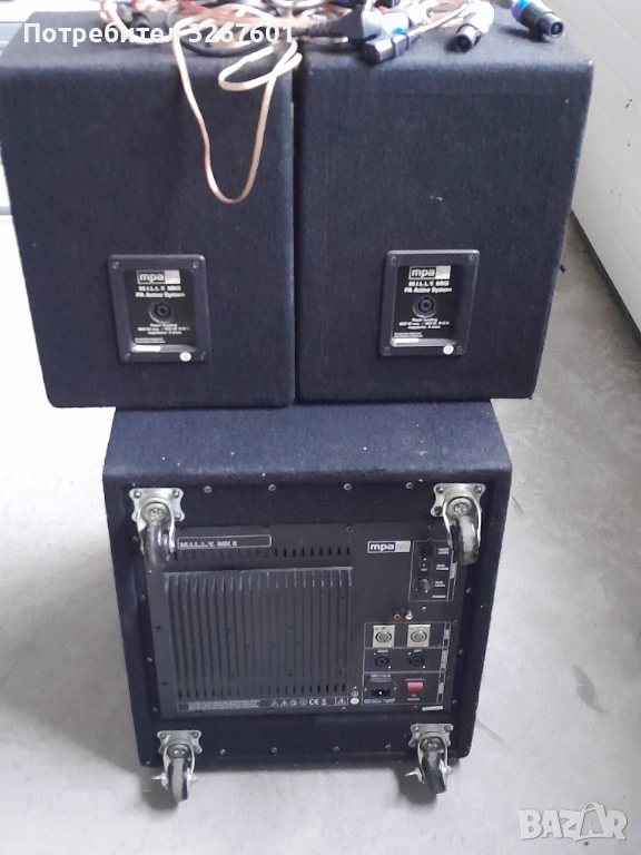 Внос от Германия . MPA M.I.L.L.Y MK 2 .2A Active sistem.активни Център 800W. Два сателита по 400 W.налични кабели запазен вид. Свирят без забележки.