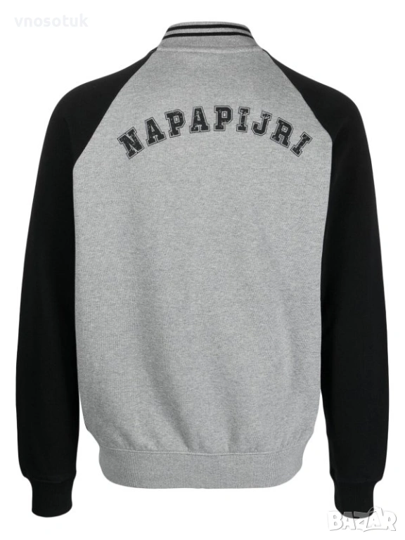 Суитшърт с цип и нашивка на лого от Napapijri, с лого от шенил, принт с лого отзад, детайл с ивици, оребрена яка, закопчаване с цип отпред, два странични джоба с кант, еластичен подгъв, сив/черен памук и дълги ръкави.