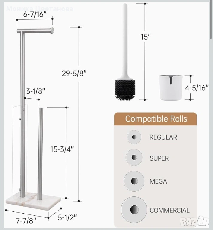 С най-високо качество! Стойка за тоалетна хартия и четка за тоалетна с основа имитираща мрамор. Цената е с до -50% от останалите сайтове и магазини. Всички стоки които предлагам са с най-високо качество, на най-ниски цени. Внос от Полша и Германия