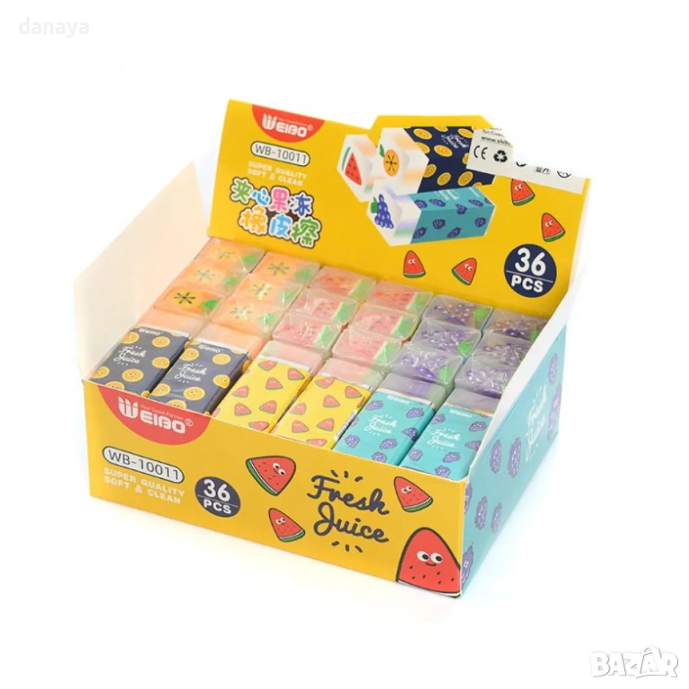 Тази гумичка за триене „Fresh Juice“ с плодове е създадена специално за деца и ученици, като съчетава свеж дизайн и ефективно почистване на молив без размазване.