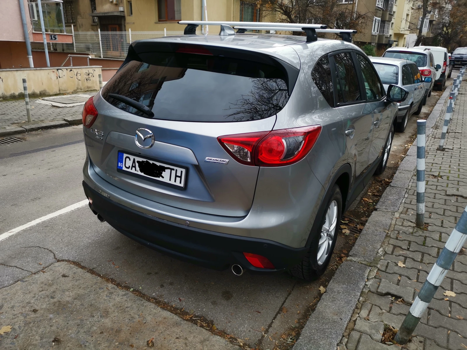 Продавам Мазда CX5, 2013, AWD, 2. 2д, 175 кс. Колата е закупена от Стар Моторс. Ниво Executive, включващо доста екстри: автоматични фарове (включване, дълги, къси, завиване), сензор за дъжд, сензор за налягане в гумите, следене на пътно платно, подгрев на предни седалки, . . . Преди 500Км са сменени масло, филтри, задни дискове и накладки. Преди няколко месеца са сменени и предни дискове и накладки. Ще ви свържа и със сервизите, които правят Мазда и обслужват колата. Тъй като си возя децата, не са правени компромиси за части и консумативи. Маслото се сменя на 10х км. Каско и ГО до 2026. Зимни: 17-ки, летни: 19-ки. Подарявам напречните греди на тавана.