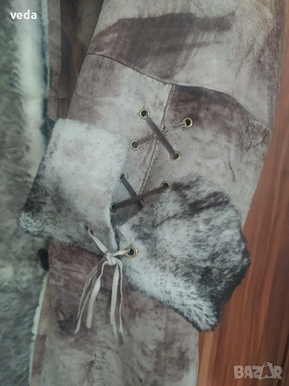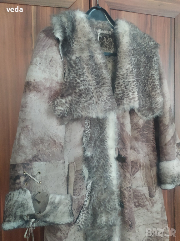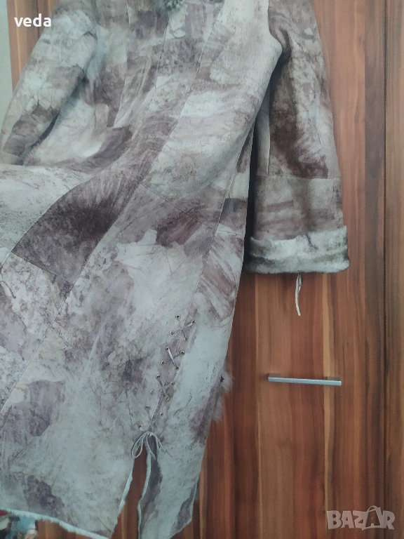 Дизайнерско палто на известната италианска фирма VIA VENETO, закупено от Италия през пролетта на 2025 година. Палтото е ново, кожата е мека и приятна на допир, без миризма и оскубани участъци, размери : рамене 40 см, дължина от врата до долу 105 см, ръкав 64 см, гръдна обиколка 90 см, стои много елегантно и шикозно.
