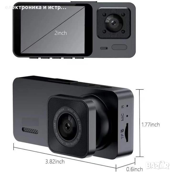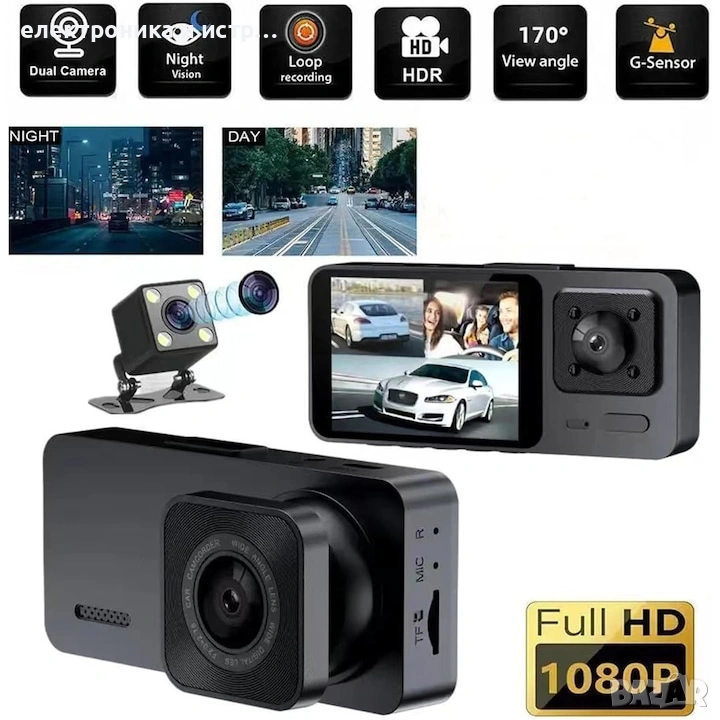 Автомобилната камера с три обектива е оборудвана с преден обектив за запис на пътя пред вас, обърнат навътре обектив за наблюдение на купето и обърнат назад обектив за наблюдение на трафика зад вас. Тази конфигурация с тройна леща гарантира, че няма слепи петна.