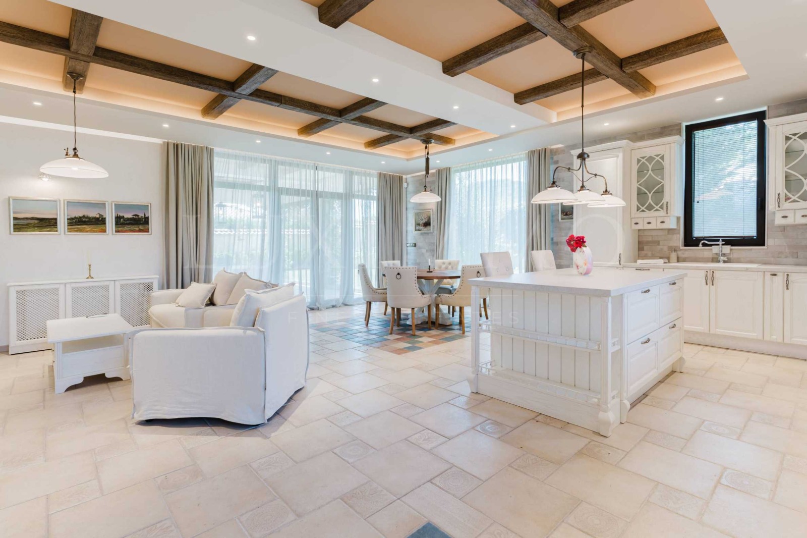 Вилата е луксозно завършена с: