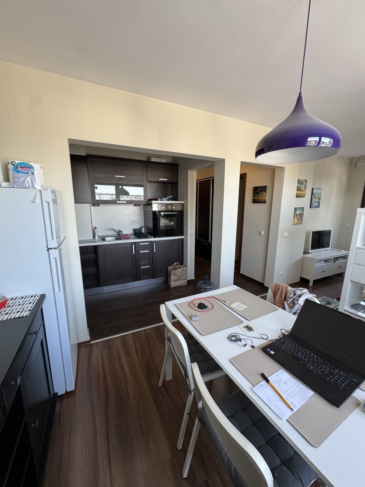 Апартаментът е напълно обзаведен с висок клас мебели и електроуреди, готов за нанасяне. Интериорът е модерен, функционален и създава усещане за комфорт и уют.