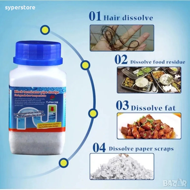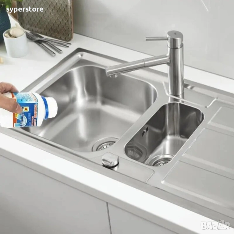 Премахва миризмите: Не само отпушва, но и убива бактериите, които причиняват вонята в сифона.
