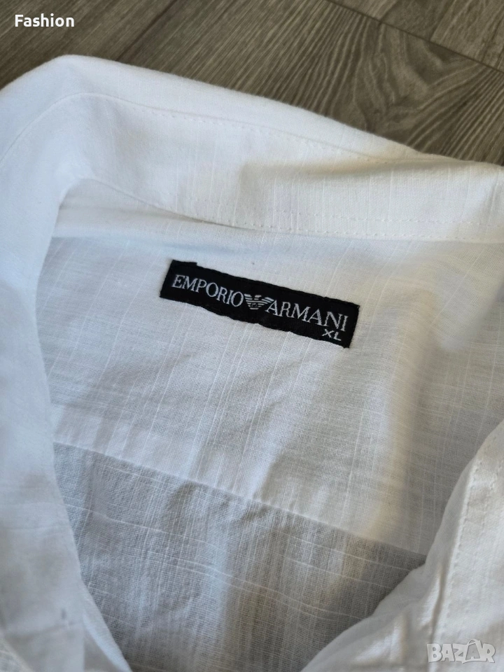 Жестока мъжка бяла ленена риза EMPORIO ARMANI. ХЛ номер.При желание ще ви предоставим размери в см. Може да се носи и с навити ръкави. Без забележки. Купувана за в пъти повече. Цена 8€. Изпращам с преглед и тест преди заплащане