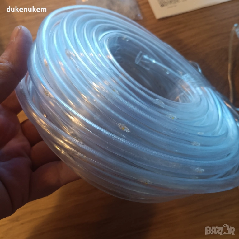 Гъвкава и без оплитане – прозрачна PVC тръба, лесна за оформяне около дървета, огради, балкони, покриви и декорации.