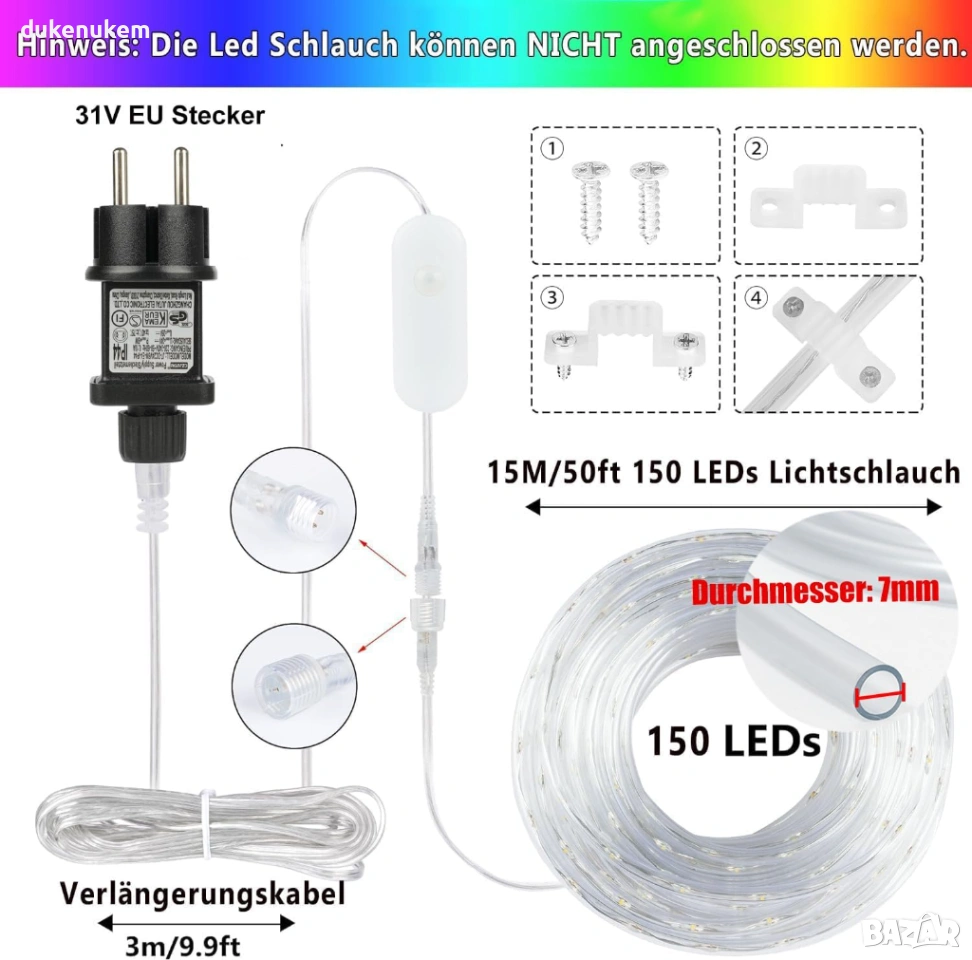LED светлинна тръба 15 м – RGB + топло бяло, IP68, с дистанционно