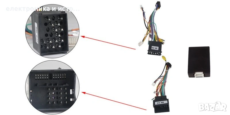 Пълен комплект с цялата рамка, преходни кабели и букси, декодери, предназначени и съвместими за монтиране на конкретния модел автомобил.