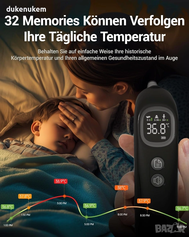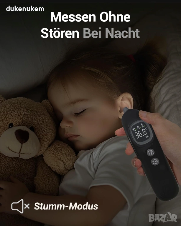 Безшумен режим (Mute) – идеален за измерване по време на сън при деца.