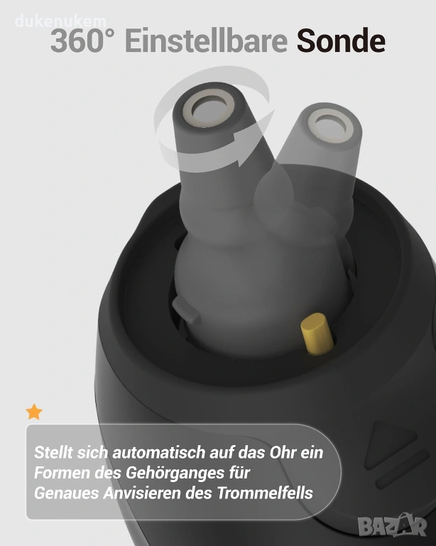 360° въртящ се накрайник – адаптира се към формата на ухото за по-комфортно и стабилно измерване.