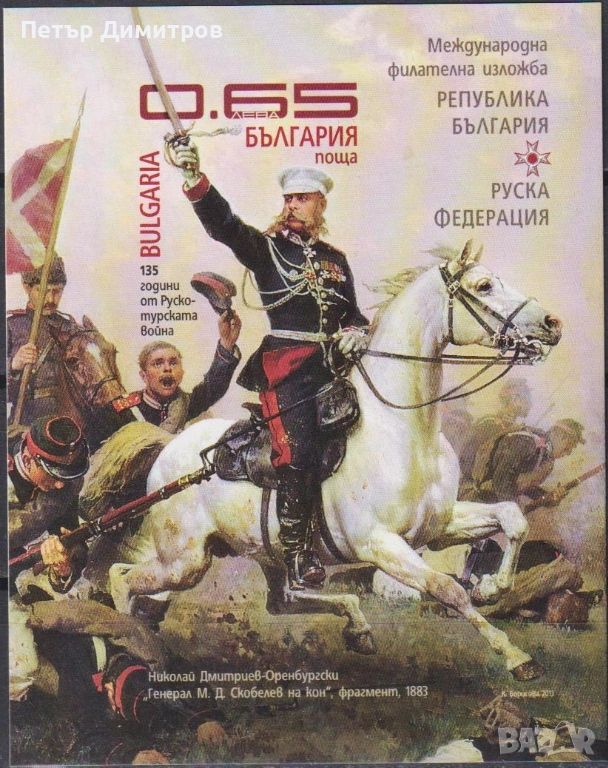 1. Чист блок Руско - Турска война Генерал Скобелев 2012 от България. Цена € 1,90 (сн. 1)