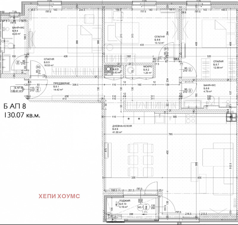 Чиста: 130, 07 кв.м.