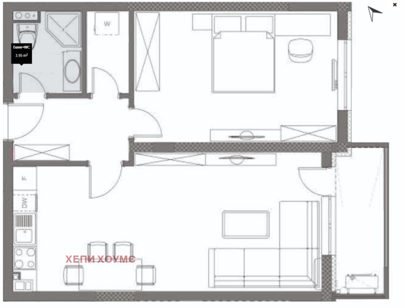 - дневна с кухненски бокс