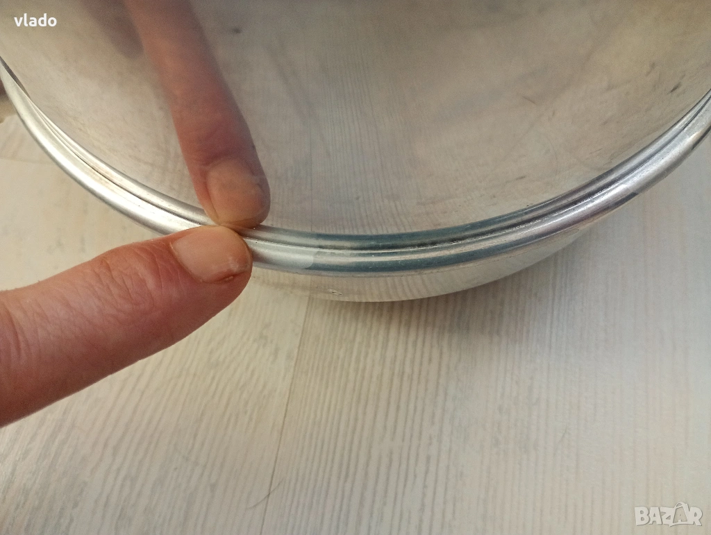 Чайникът е тестван работи, но при загряване в долната част от ръба започват да се отделят на няколко места малки капчици вода (посочил съм го на една от снимките)