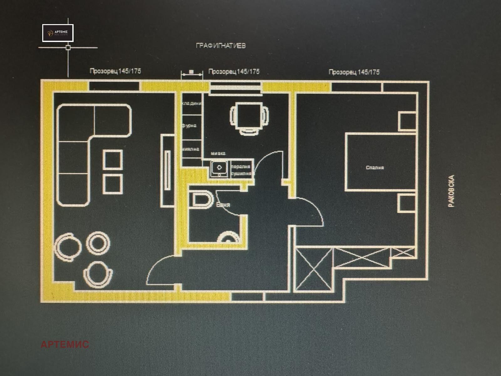 Агенция Артемис отдава двустаен апартамент с отделна кухня на площад Славейков. Имота е в перфектно състояние, за ваше улеснение прилагаме и чертеж с разпределението му.