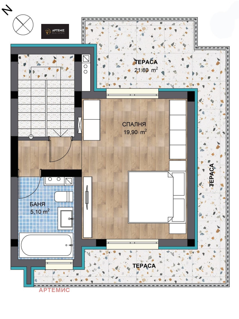 Трети етаж - спалня с баня и тоалетна, тераса с 360 панорама;