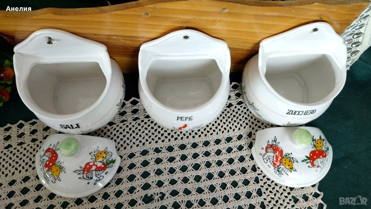 3 буркана с дървена поставка → Обява 53163273