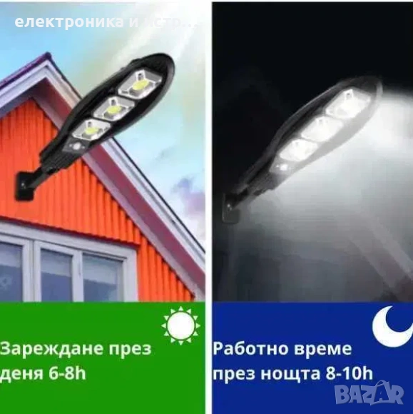 - През светлата част на деня батерията се зарежда, като веднага след като се стъмни осветлението се включва автоматично, благодарение на сензорна клетка за външна осветеност, които са в соларния панел.