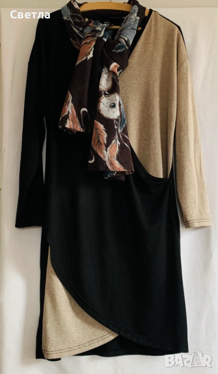 2. В два цвята - черно и бежово, р-р L - ГО-95см, Дължина - 96см, Талия- 94см, Ханш 104см.Подарък шала от последна снимка.