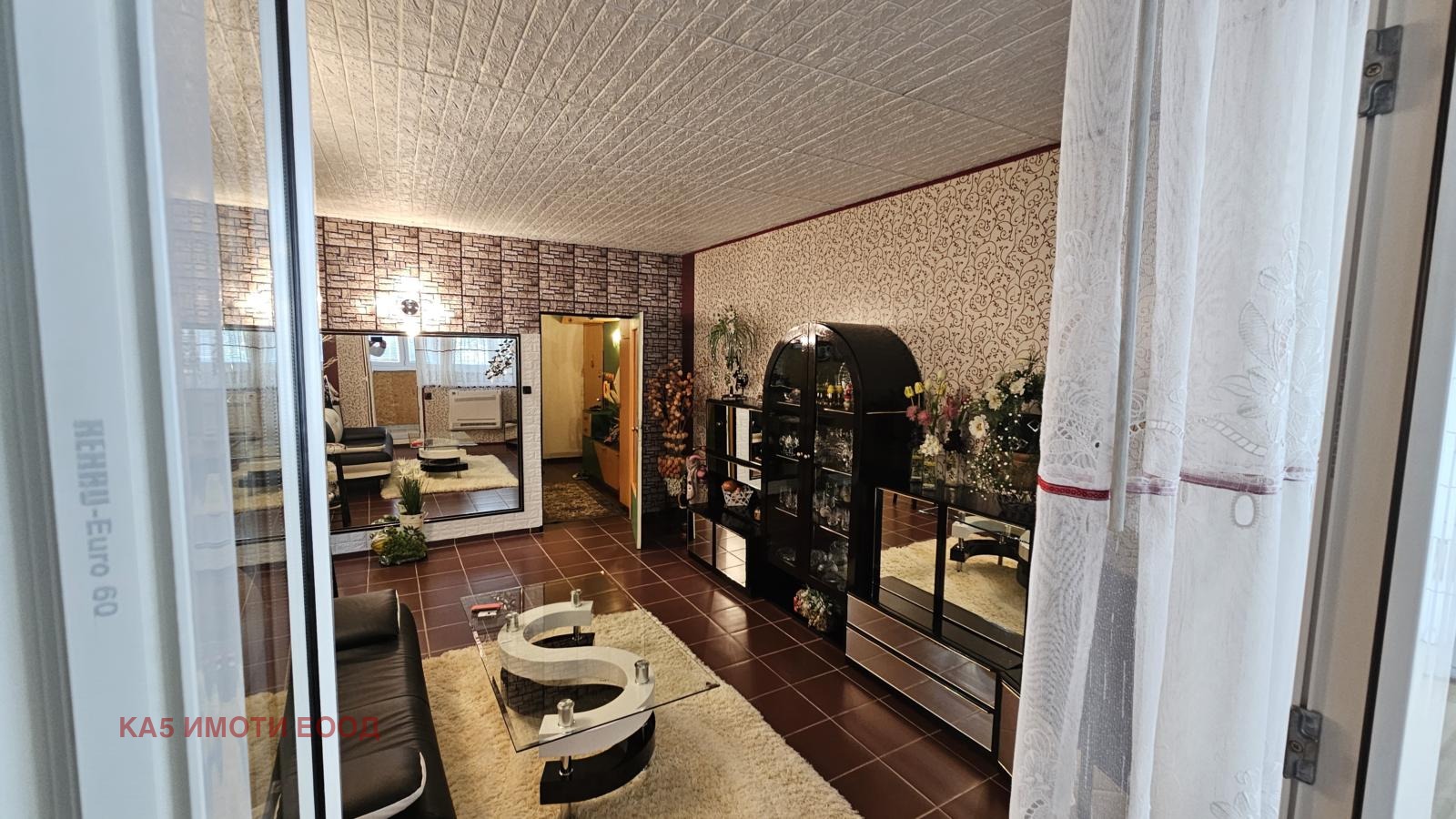 отвежда към просторна дневна с трапезария и кухненски бокс, малка спалня, подходяща и за кабинет. От дневната има излаз към голяма тераса, остъклена с ПВЦ дограма. В другата част на коридора е разположена самостоятелна спалня, баня с WС.
