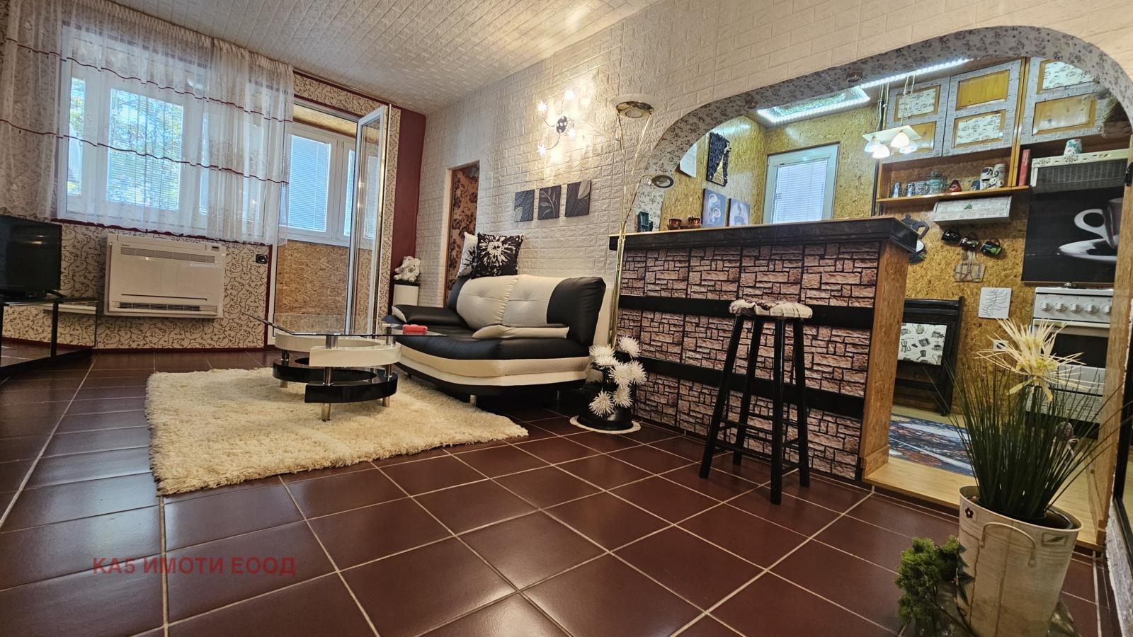 СЪСТОЯНИЕ: САНИРАН /външна и вътрешна топлоизолация/. Наличното обзавеждане и оборудване е включено в цената. Отоплението в апартамента е чрез инверторен подов климатик МИДЕА , а топлата вода е от бойлер. Останалото е видно от снимковия материал и виртуалната разходка към офертата.