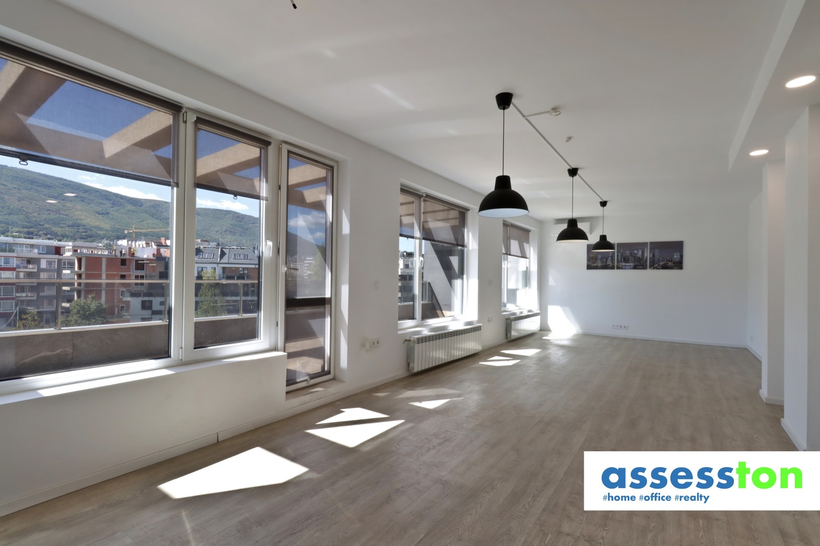 Разпределение: Антре, обширна всекидневна с прекрасна тераса под полите на Витоша, коридор, тоалетна за гости, мокро помещение, родителска спалня с дрешник, втора спалня, втора тераса с достъп от двете спални и гледка към централна София, баня с тоалетна.
