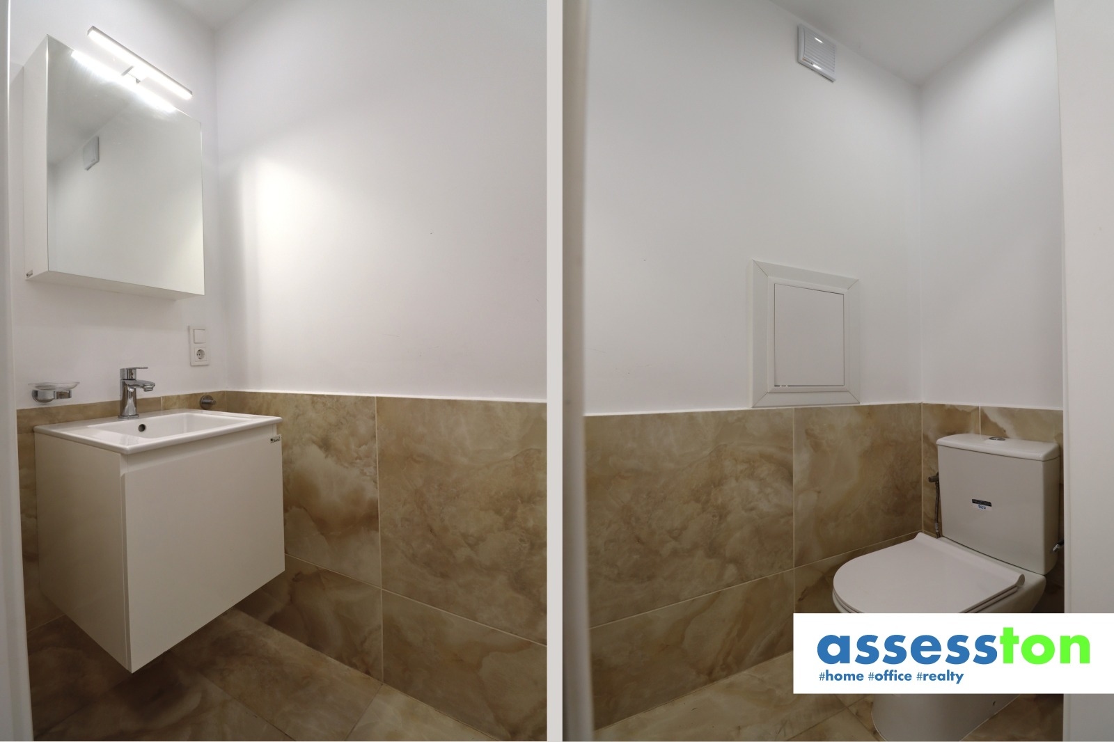 Три санитарни възела, съответно тоалетна за гости, мокро помещение и баня с тоалетна във вътрешността на апартамента.