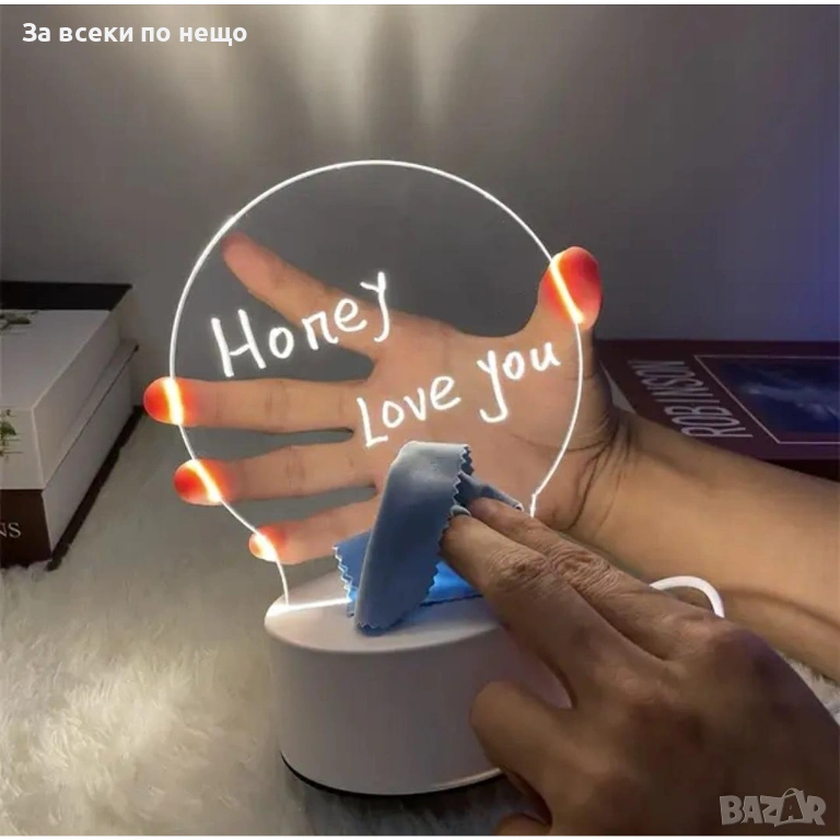 LED светеща дъска за рисуване. Светещата дъска за съобщения е иновативно изобретение, което може да бъде използвано в различни сфери и за различни цели. Тя представлява дъска с LED Home & Garden > Lighting, която позволява да се пише и рисува с неонови маркери, които светят в тъмното.
